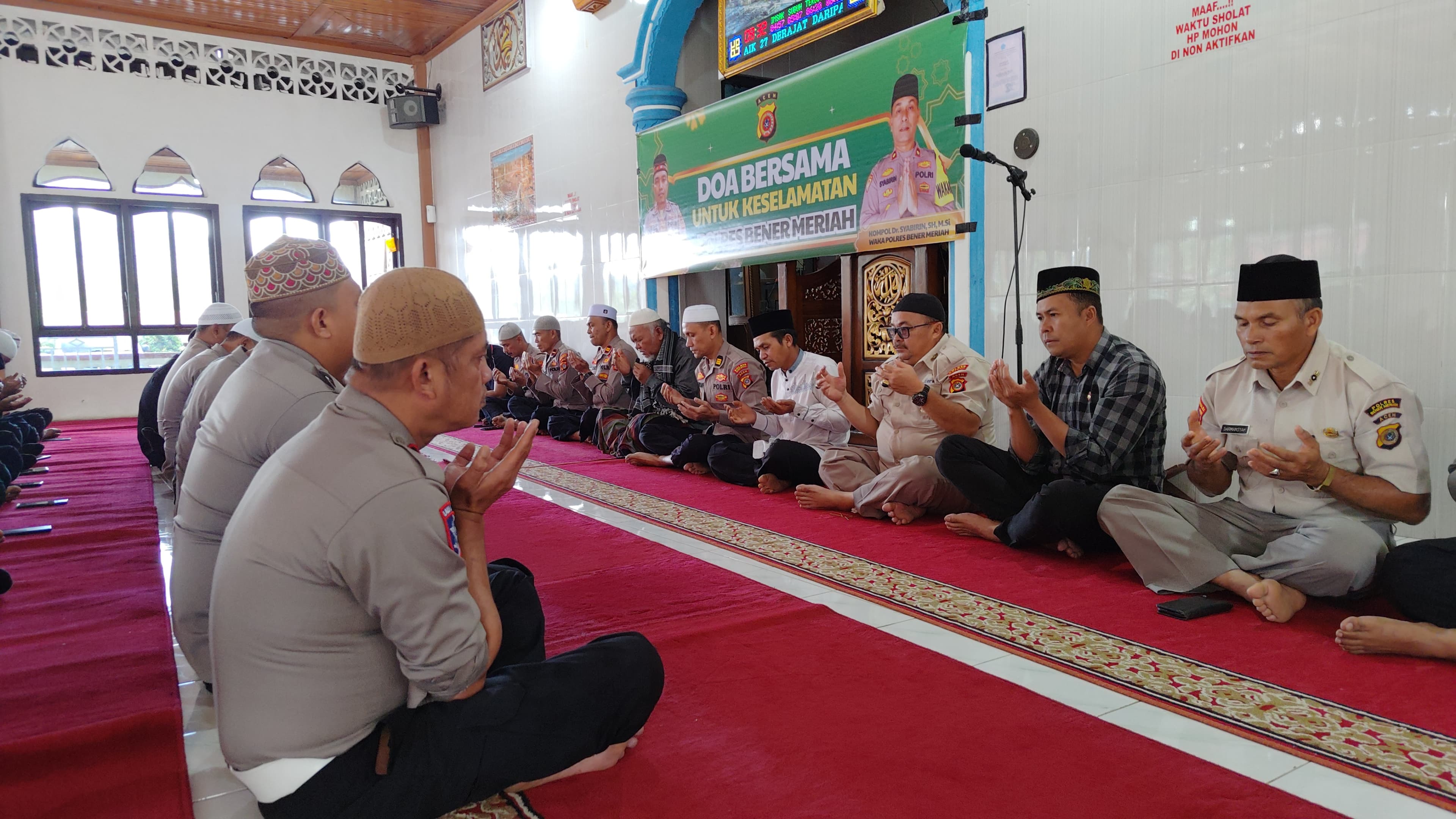 Keizalinnews.web.id|Redelong-:Polres Bener Meriah melaksanakan doa bersama untuk keselamatan personel jajaran Polda Aceh yang berlangsung di Masjid Al-Mukminun, Desa Burni Telong, Kecamatan Wih Pesam, Kabupaten Bener Meriah, pada Jumat (19/9/2025).