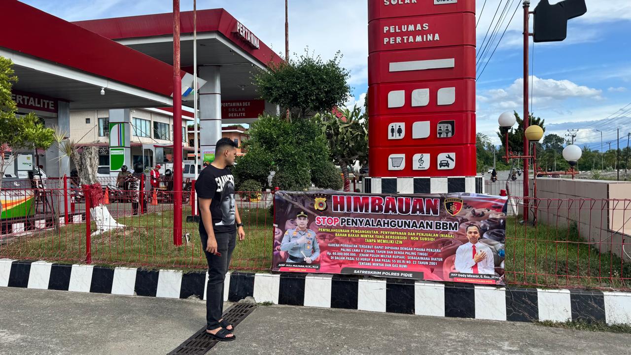 Keizalinnews.web.id Pidie – Polres Pidie melalui Unit Tindak Pidana Tertentu (Tipidter) Sat Reskrim melakukan pemasangan spanduk himbauan terkait pencegahan penyalahgunaan Bahan Bakar Minyak (BBM) bersubsidi di sejumlah Stasiun Pengisian Bahan Bakar Umum (SPBU) dalam wilayah hukum Polres Pidie, Minggu (28/9/2025) siang.