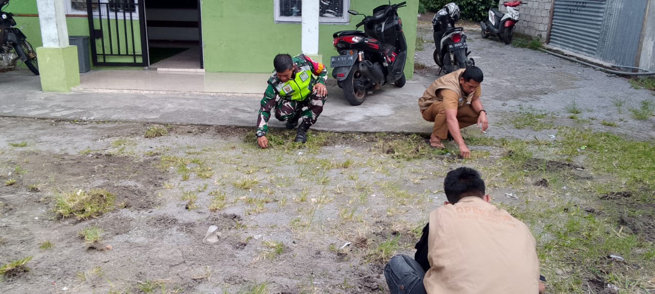Keizalinnews.web.id|Redelong-:Kodim 0119BM – Dalam rangka meningkatkan kebersihan dan kenyamanan lingkungan, Babinsa Koramil 06/Bukit Serda M Riza melaksanakan kegiatan kerja bakti pembersihan halaman Kantor Desa Hakim Tungul Naru, Kecamatan Bukit, Kabupaten Bener Meriah Rabu (01/10/2025).