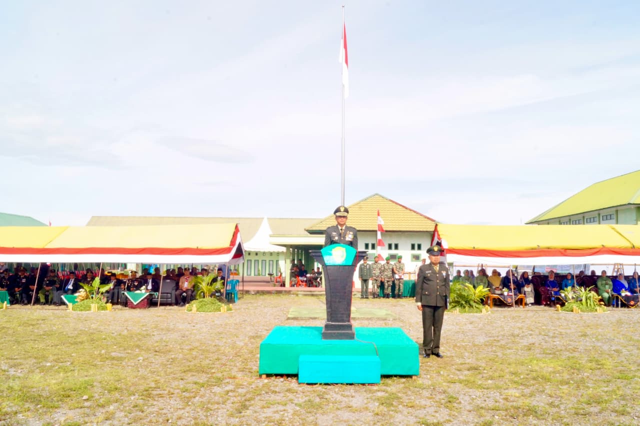 Dandim 0119/BM Letkol Inf Ahmad Fauzi yang diwakili Kelapa Staf Kodim Mayor Arh Nasrib Bacakan amanat Panglima TNI Agus Subiyanto S. E. M. SI. Assalamualaikum Wr. Wb., Selamat pagi, Salam Sejahtera, Syaloom, Om Swastyastu, Namo Buddhaya, Salam Kebajikan. Para Perwira, Bintara, Tamtama dan Pegawai Negeri Sipil TNI yang saya banggakan dimanapun berada dan bertugas.