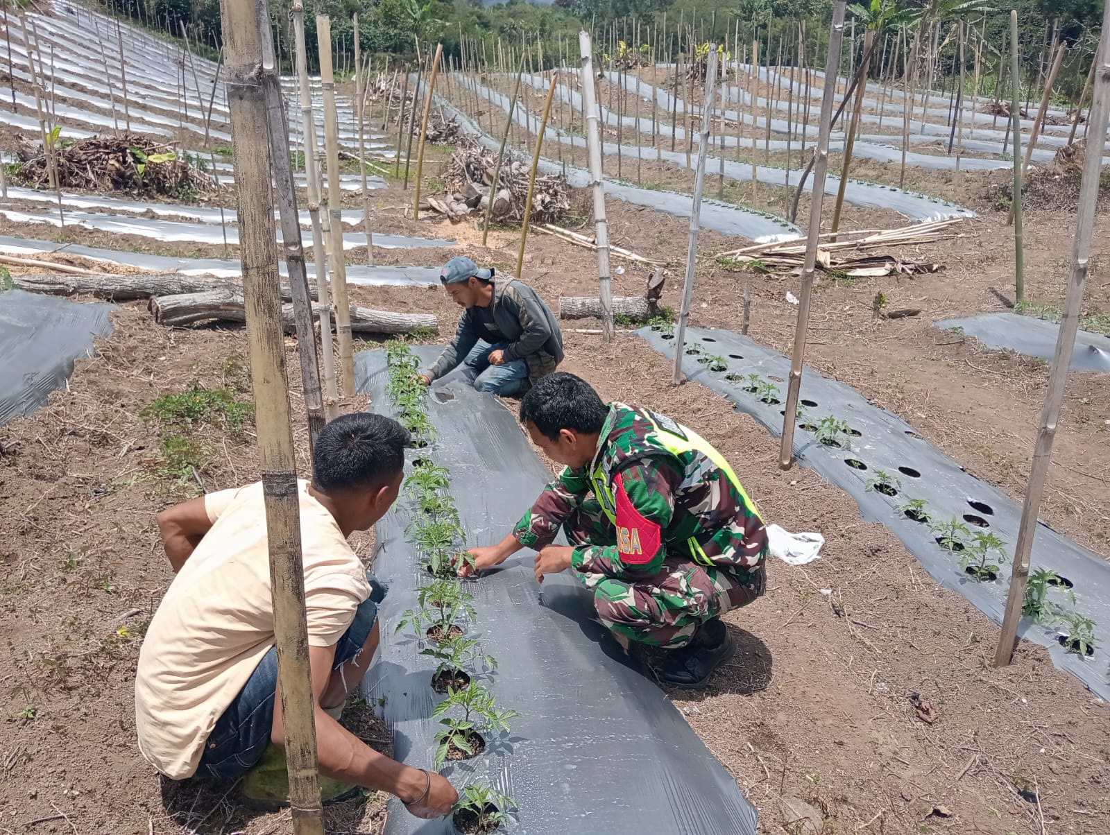 Keizalinnews.web.id|Redelong-:Kodim 0119/BM – Babinsa Koramil 05/Permata Serda Sahibi lakukan pendampingan kepada petani tomat yang berada di Desa Burni Pase, Kecamatan Permata, Kabupaten Bener Meriah, Selasa (07/10/2025).