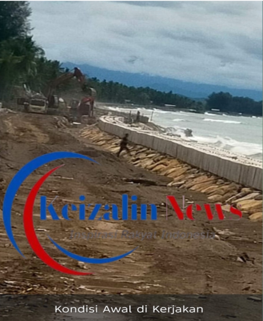 Dugaan awal mengarah pada kelalaian pihak rekanan yang tidak memasang lapisan geotekstil (giotek) — material penting untuk menahan pergeseran batu dan memperkuat struktur. Akibatnya, tembok penahan ombak yang menelan dana mencapai Rp9 miliar dari APBN itu mulai mengalami kerusakan dini.