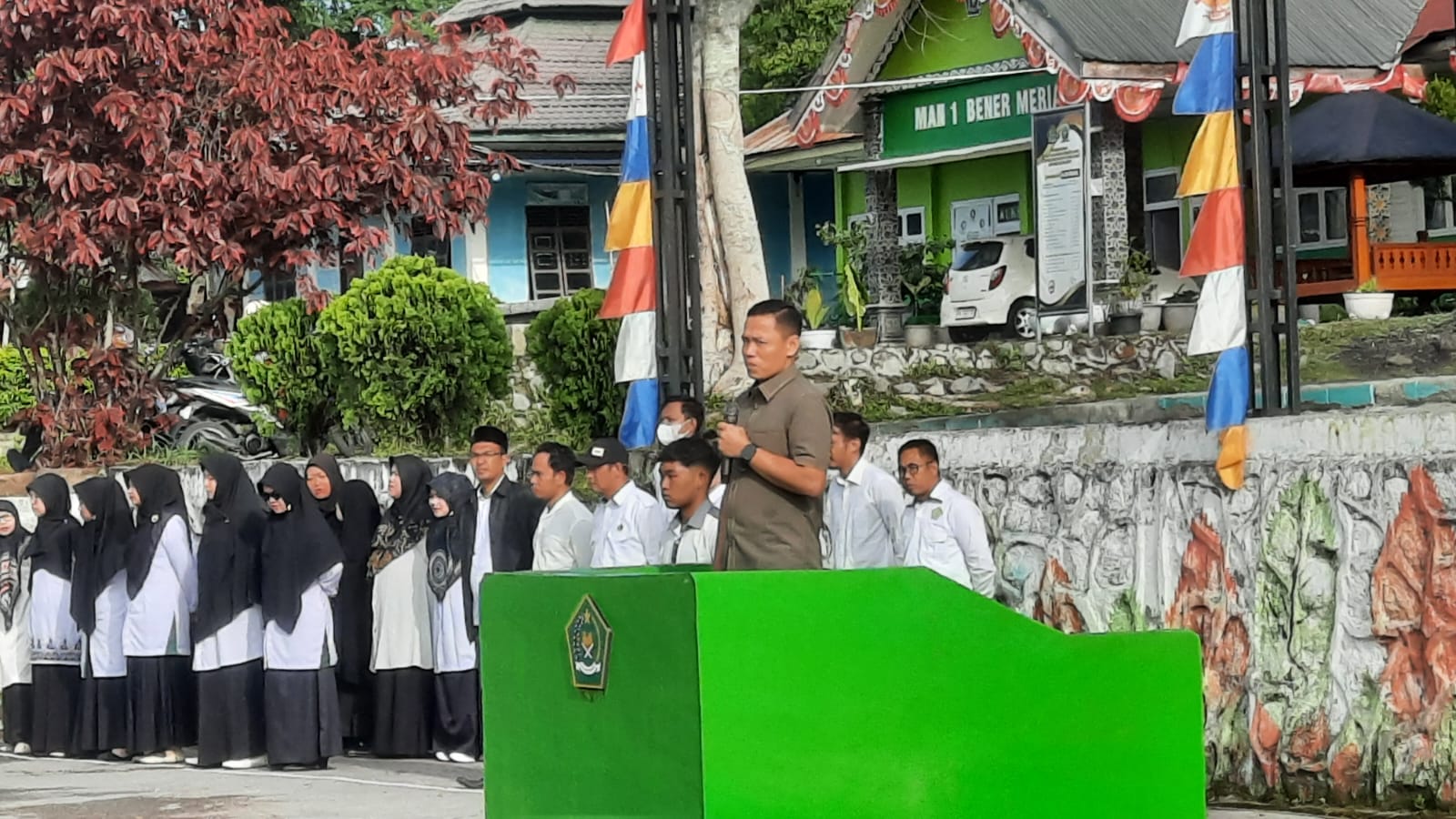 Kegiatan yang berlangsung di lapangan MAN 1 tersebut dimulai sekitar pukul 07.35 WIB dan dihadiri oleh Kepala Sekolah MAN 1 Bener Meriah, M. Tajri, S.Pd.I, para dewan guru, serta seluruh siswa-siswi.