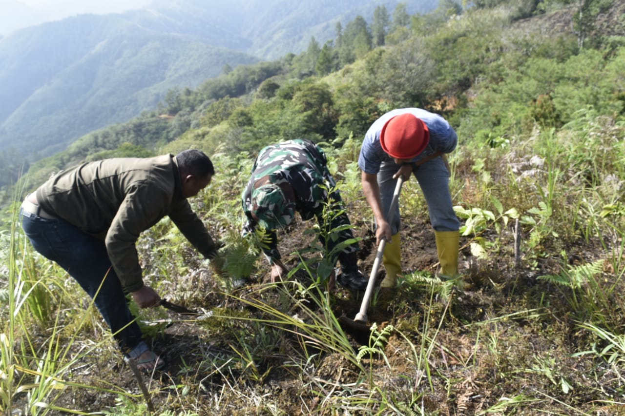 Dansatgas TMMD, Letkol Inf Ahmad Fauzi, melalui Dan SST Letda Kav M. Rafi Andika mengatakan” Kegiatan penanaman pohon Alpukat dan Mahoni tersebut dilakukan secara gotong royong oleh personel Satgas bersama masyarakat setempat.