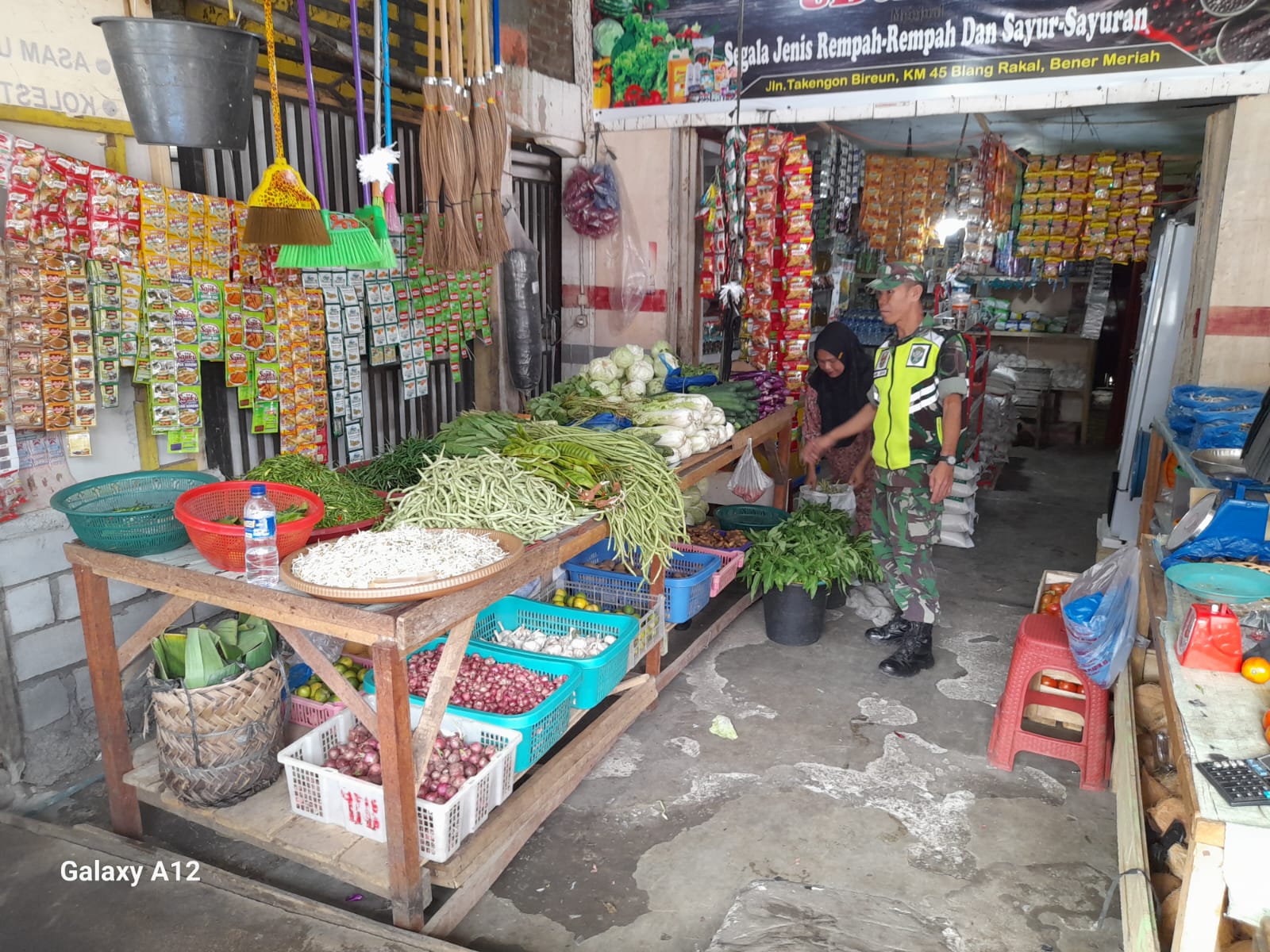 Keizalinnews.web.id|Redelong-:Kodim 0119/BM – Anggota Koramil 04/PRG Sertu M Jakfar melakukan pendataan harga kebutuhan pangan di Pasar Blang Rakal yang berada di wilayah Kecamatan Pintu Rime Gayo, Kabupaten Bener Meriah, Rabu (15/10/2025).