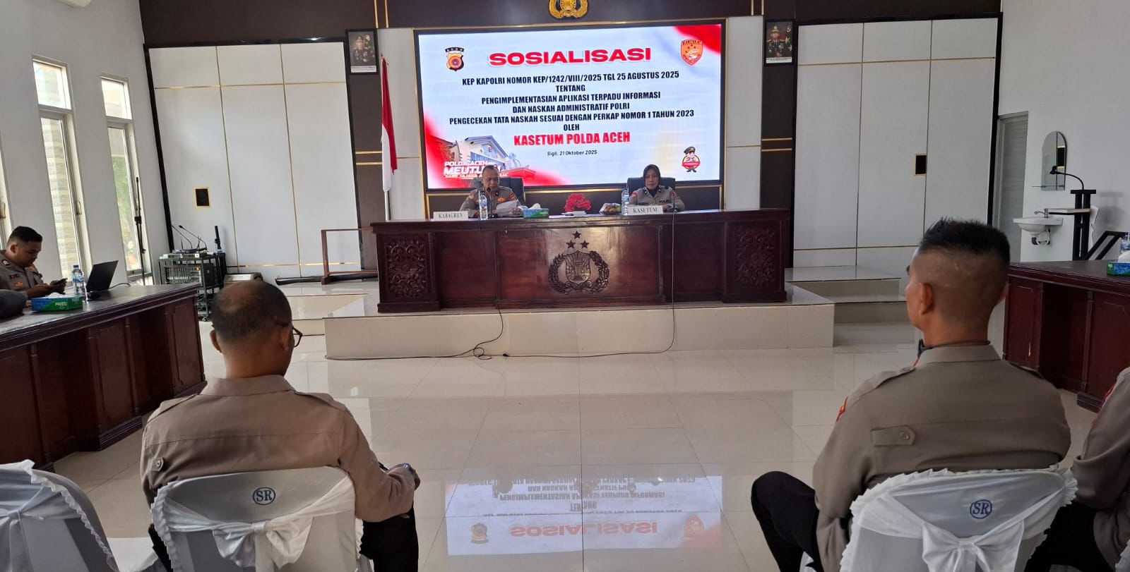 Kasetum Polda Aceh Kompol Iradah menjelaskan bahwa kegiatan ini merupakan tindak lanjut dari Keputusan Kapolri Nomor: KEP/1242/VIII/2025 tanggal 25 Agustus 2025 tentang Pengimplementasian Aplikasi Terpadu Informasi dan Naskah Administratif Polri.