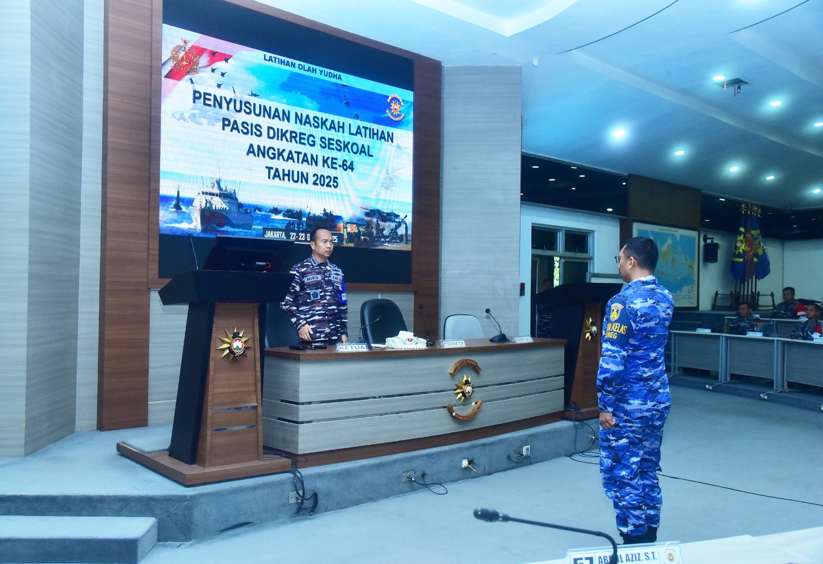 KeizalinNews.web.id Jakarta — Komandan Sekolah Staf dan Komando Angkatan Laut (Danseskoal) Laksamana Muda TNI Ariantyo Condrowibowo selaku Pimpinan Umum Latihan (Pimumlat) diwakili Kepala Departemen Operasi (Kadepops) Seskoal Kolonel Laut (P) Niko Oktoria selaku Direktur Latihan (Dirlat) memberikan briefing awal kegiatan Olah Yudha Latihan Penyusunan Naskah Latihan (Oyu Latsunnaslat), bertempat di kelas A gedung R.E. Martadinata, Seskoal, Cipulir, Kebayoran Lama, Jakarta Selatan, Rabu (22/10/2025).