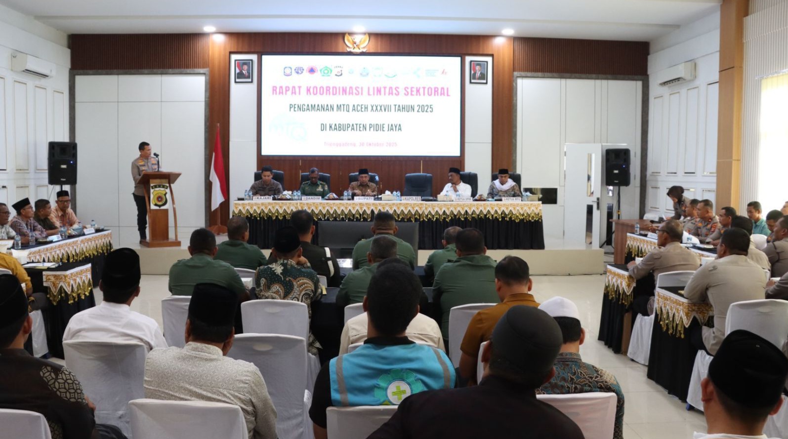 Keizalinnews.web.id PIDIE JAYA – Menjelang pelaksanaan Musabaqah Tilawatil Qur’an (MTQ) Aceh XXXVII yang akan digelar di Kabupaten Pidie Jaya, Polres Pidie Jaya melaksanakan Rapat Koordinasi (Rakor) Lintas Sektoral dalam rangka kesiapan pengamanan kegiatan tersebut.
