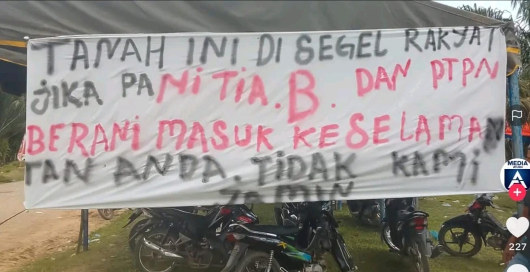 Spanduk yang dipasang oleh masyarakat Cot Girek berisi penolakan terhadap BPN Aceh, seperti “Tanah Ini Di Segel Rakyat, Jika Panitia B dan PTPN Berani Masuk, Keselamatan Anda Tidak Kami Jamin” dan “BPN Aceh Pengkhianat Rakyat”.