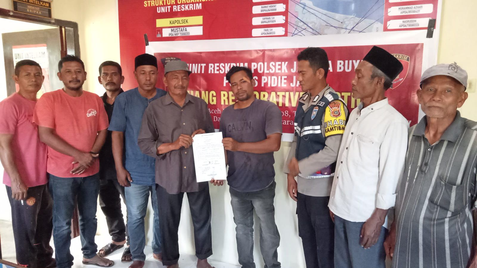 Setelah menerima laporan, Polsek Jangka Buya segera melakukan pendekatan dengan berkoordinasi bersama perangkat gampong untuk menempuh penyelesaian secara adat sesuai Qanun Aceh Nomor 9 Tahun 2008.