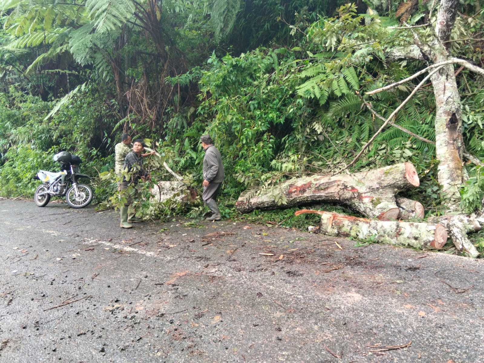 Menanggapi kondisi tersebut, Komandan Kodim (Dandim) 0106/Aceh Tengah, Letkol Inf Raden Herman Sasmita, bergerak cepat dengan memerintahkan anggota Koramil 03/Pegasing untuk turun langsung ke lokasi guna membersihkan matrial kayu yang menutupi badan jalan.