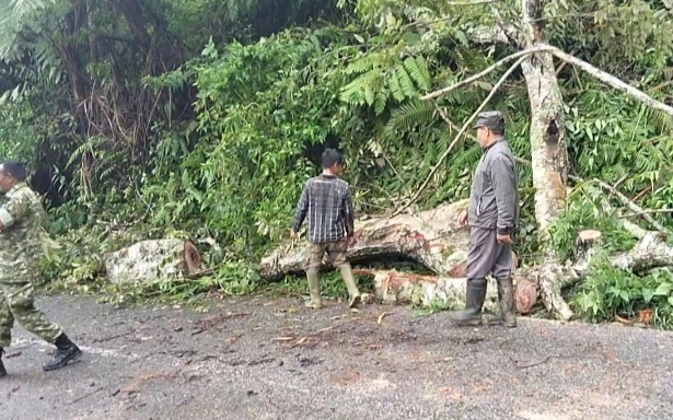 Dalam kegiatan tersebut, anggota Koramil 03/Pegasing yang terdiri dari Serka Iwan dan Koptu Dedi bersama enam orang masyarakat setempat bergotong royong memotong dan menyingkirkan pohon tumbang dari badan jalan.