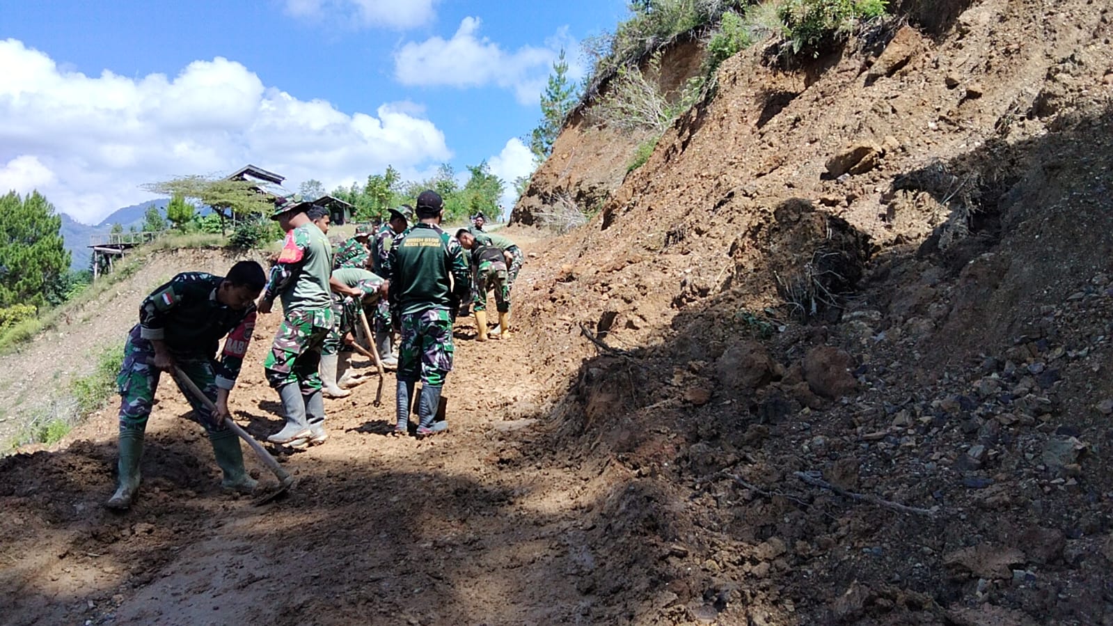 “Gotong royong ini merupakan wujud kemanunggalan TNI dengan rakyat. Kami hadir untuk membantu masyarakat agar akses jalan bisa segera kembali digunakan,” ujarnya.