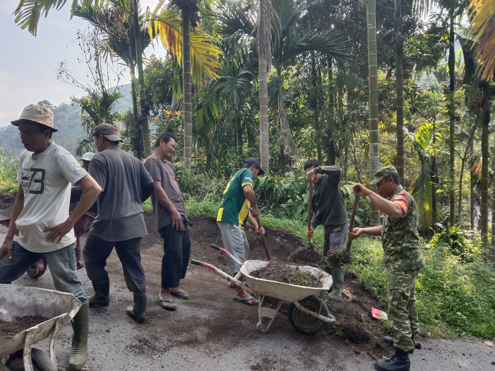 Keizalinews.web.id | Redelong-: Sebagai bentuk kepedulian terhadap kebersihan, serta kerapian akses jalan desa, Babinsa Koramil 03/TG kerahkan warga bergotong royong membersihkan kanan kiri jalan dari tumpukan tanah, agar akses jalan terlihat bersih dan rapi bertempat di Desa Belang Rongka Kecamatan Timang Gajah Kabupaten Bener Meriah” Sabtu 26 April 2026
