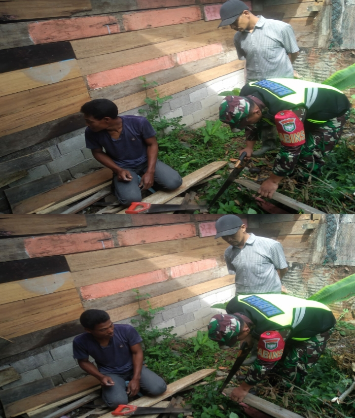 Wujud Nyata TNI Bersama Masyarakat, Babinsa Koramil 04/Bintang Bantu Warga Perbaiki Rumah