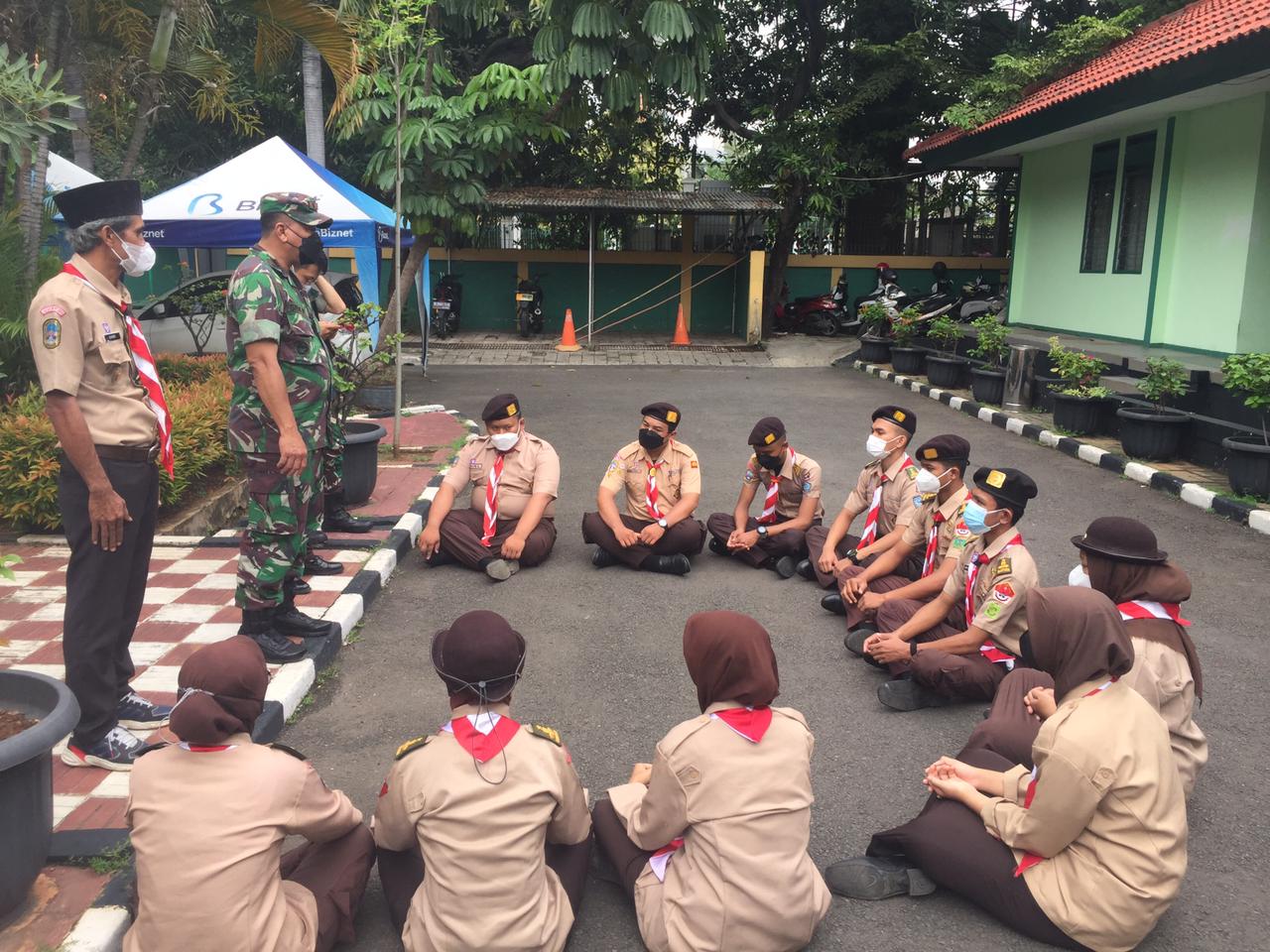 KeizalinNews.com Jakarta Utara — Danramil-06/Kelapa Gading Mayor Arm Sidik Abriyanta sebagai Ka Mabisaka memberikan semangat dan motivasi kepada anggota Pramuka Saka Wira Kartika Jendral Sudirman saat melakukan latihan di halaman Makoramil Kelapa Gading, Minggu (20/2/2022).