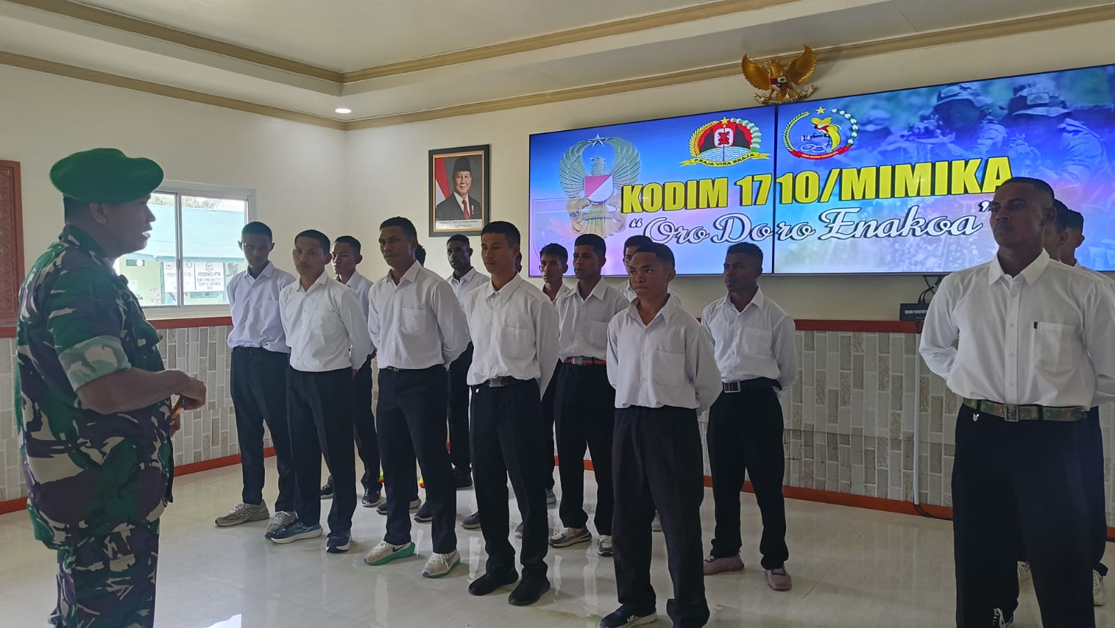 KeizalinNews.web.id Timika — Guna memotivasi dalam meraih cita-cita, Dandim 1710/Mimika Letkol Inf M. Slamet Wijaya, S.Sos,. M.Han,. M.A. memberikan pengarahan kepada rekrutmen calon Prajurit…