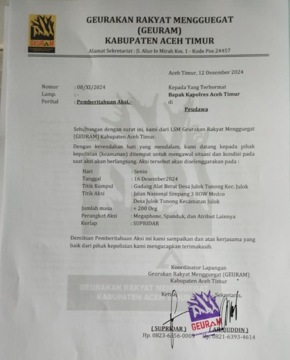 Keizailinnews online Aceh Timur Nanggroe Aceh Darussalam NAD – Puluhan warga yang tergabung dalam Geurakan Rakyat Menggeugat (GERAM) orang melaksanakan aksi unjuk rasa di…