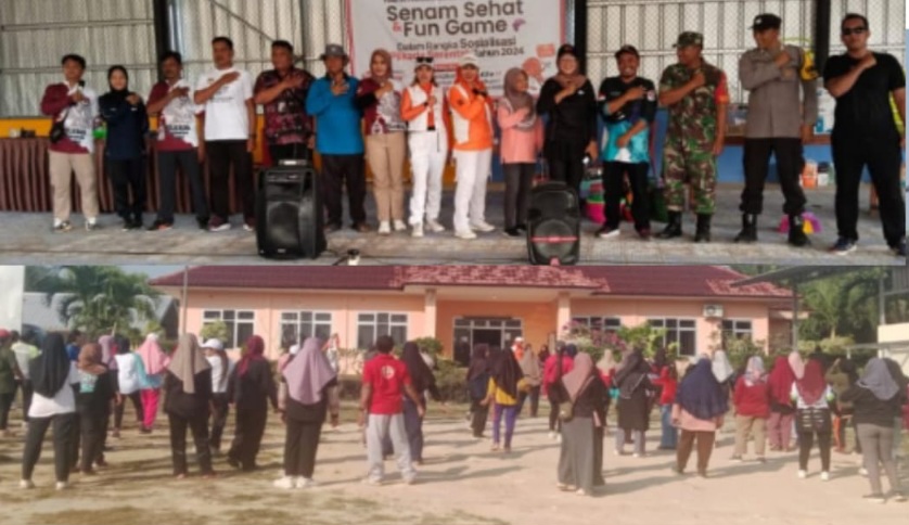 Keizalinnews.online, Sijuk – Anggota Koramil 414-01/Tp Sertu I Kadek Edi P, Babinsa Desa Pelepak Pute mengikuti senam sehat dan fun game dalam rangka sosialisasi…