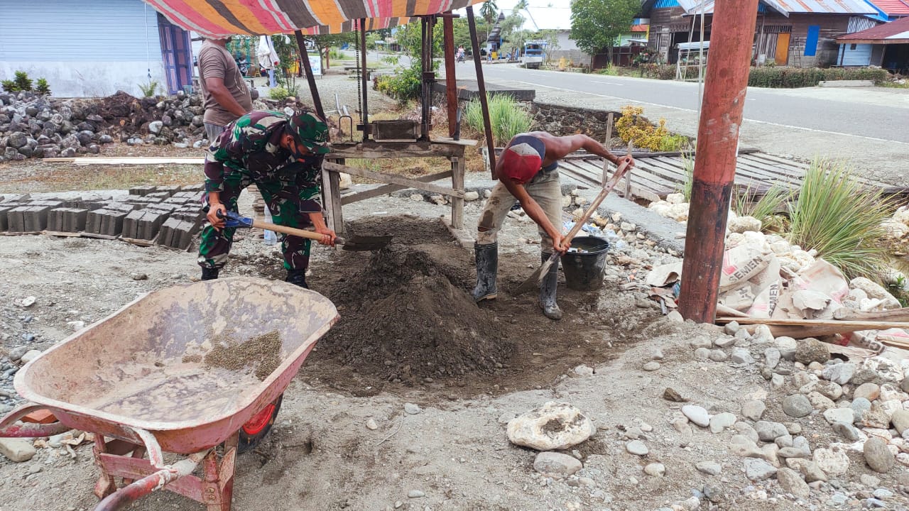 KeizalinNews.com Makimi —Untuk selalu memelihara hubungan baik dengan masyarakat binaan, Babinsa Ramil 1705-02/Napan (Serka Fiki Bachtiar) membantu membuat batu tela untuk dinding rumah warga…