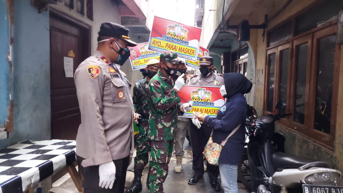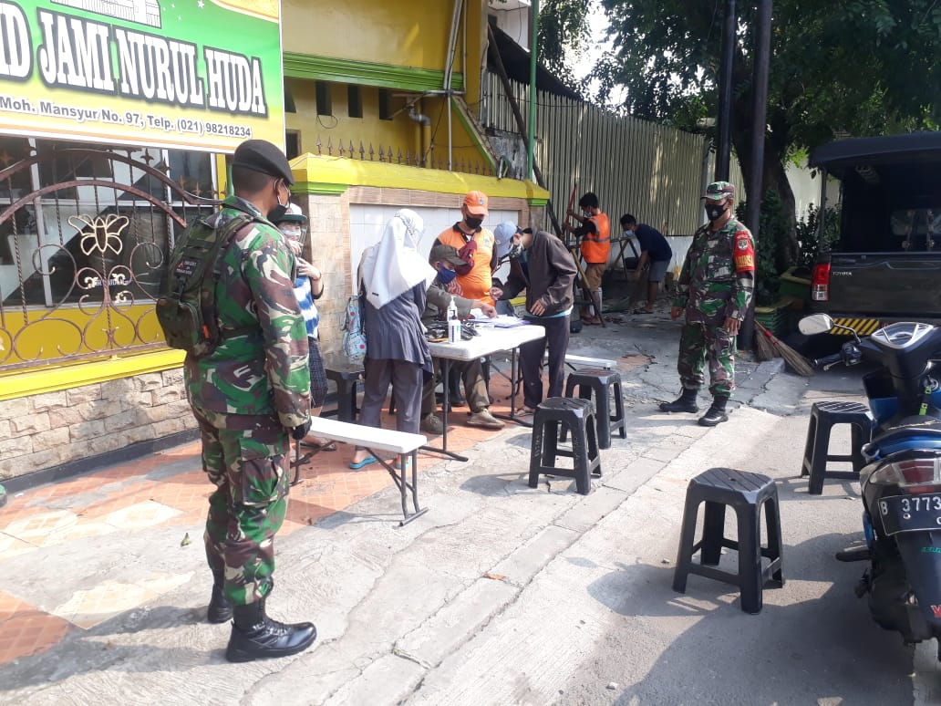 Jakarta KEIZALINNEWS ,Jakarta -Guna mencegah penyebaran dan penularan Covid 19 di wilayah Koramil 02/TB, Sertu Sarip H dan BKO Yonkav 9/SDK bersama Polsek Tambora,Pol…