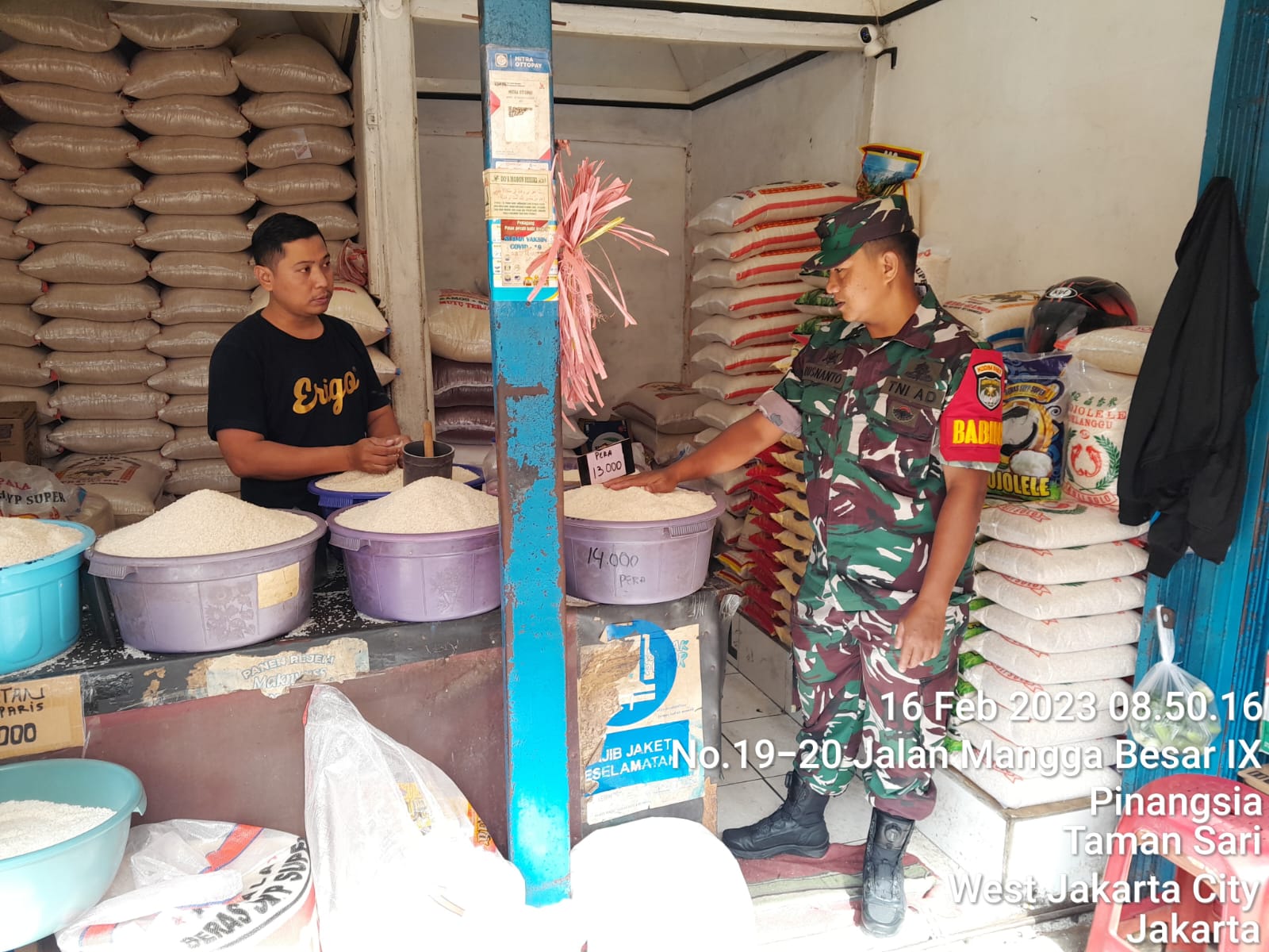 KeizalinNews Kodam Jaya, Kodim 0503/JB – Babinsa Koramil 01/Tamansari Kodim 0503/JB, Sertu Rusnanto melakukan pemantauan harga sembako di pasar Pecah Kulit Jalan Mangga Besar…