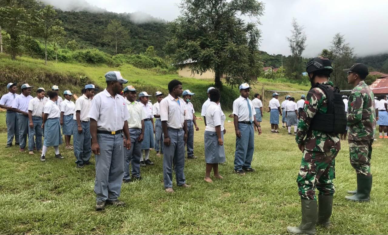 KeizalinNews Pegunungan Bintang -Satgas Yonif 143/TWEJ bersama anggota Koramil 1715-05 Okbibab melatihkan peraturan baris berbaris dalam rangka membentuk karakter disiplin dan kekompakan kalangan pelajar…