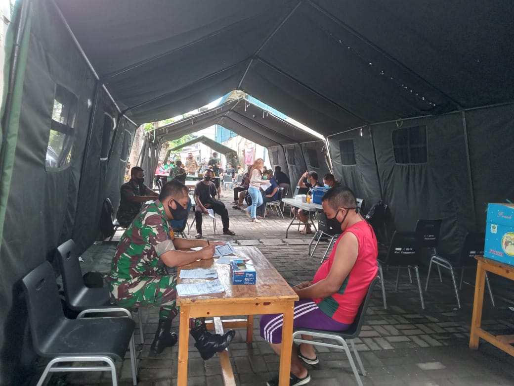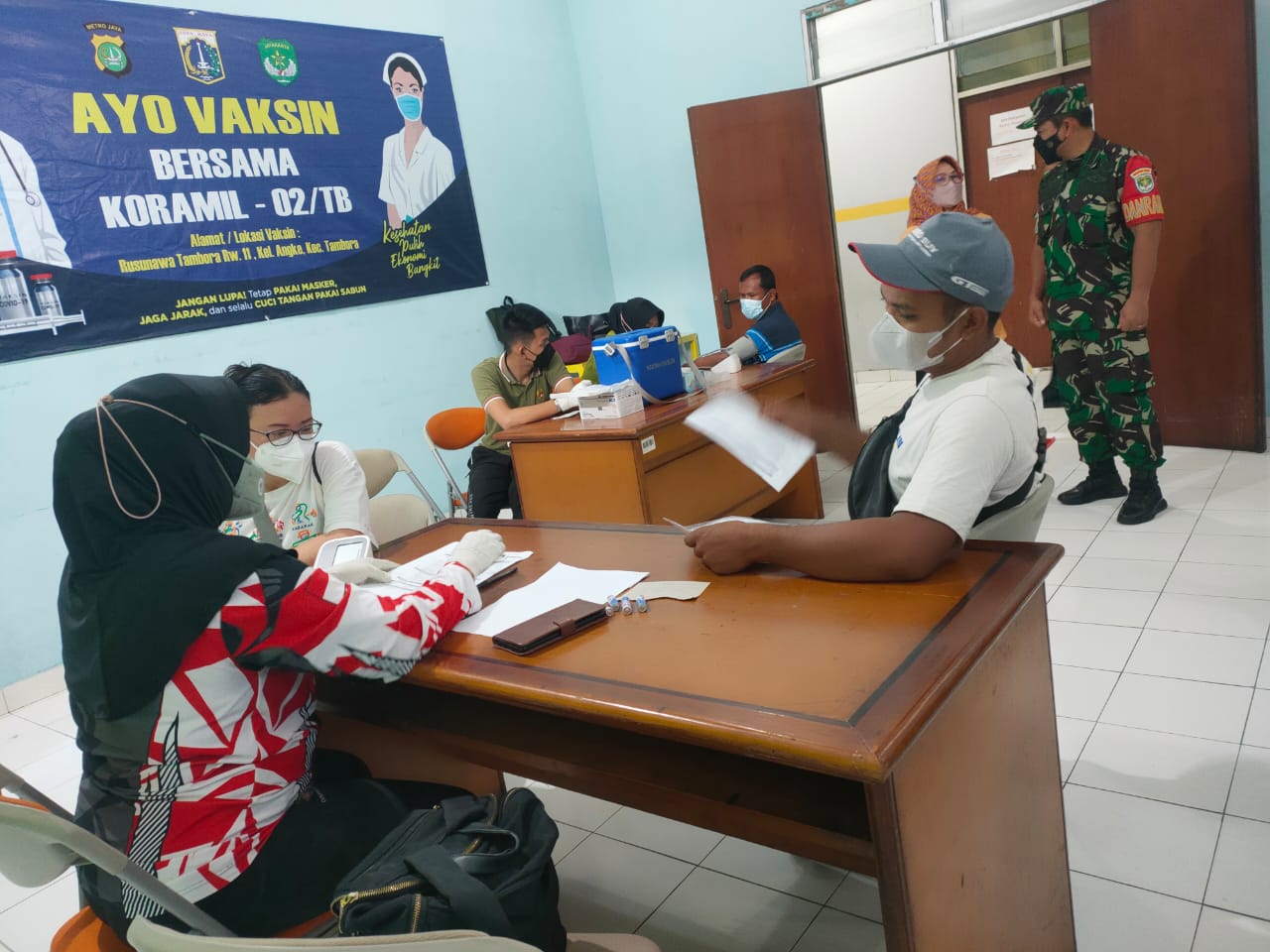Jakarta KEIZALINNEWS -Danramil 02/TB Kapten Inf Arja Suarja pantau kegiatan Serbuan Vaksinasi TNI Kodim 0503/JB yang digelar Koramil 02/TB di Rusunawa Tambora / Angke…