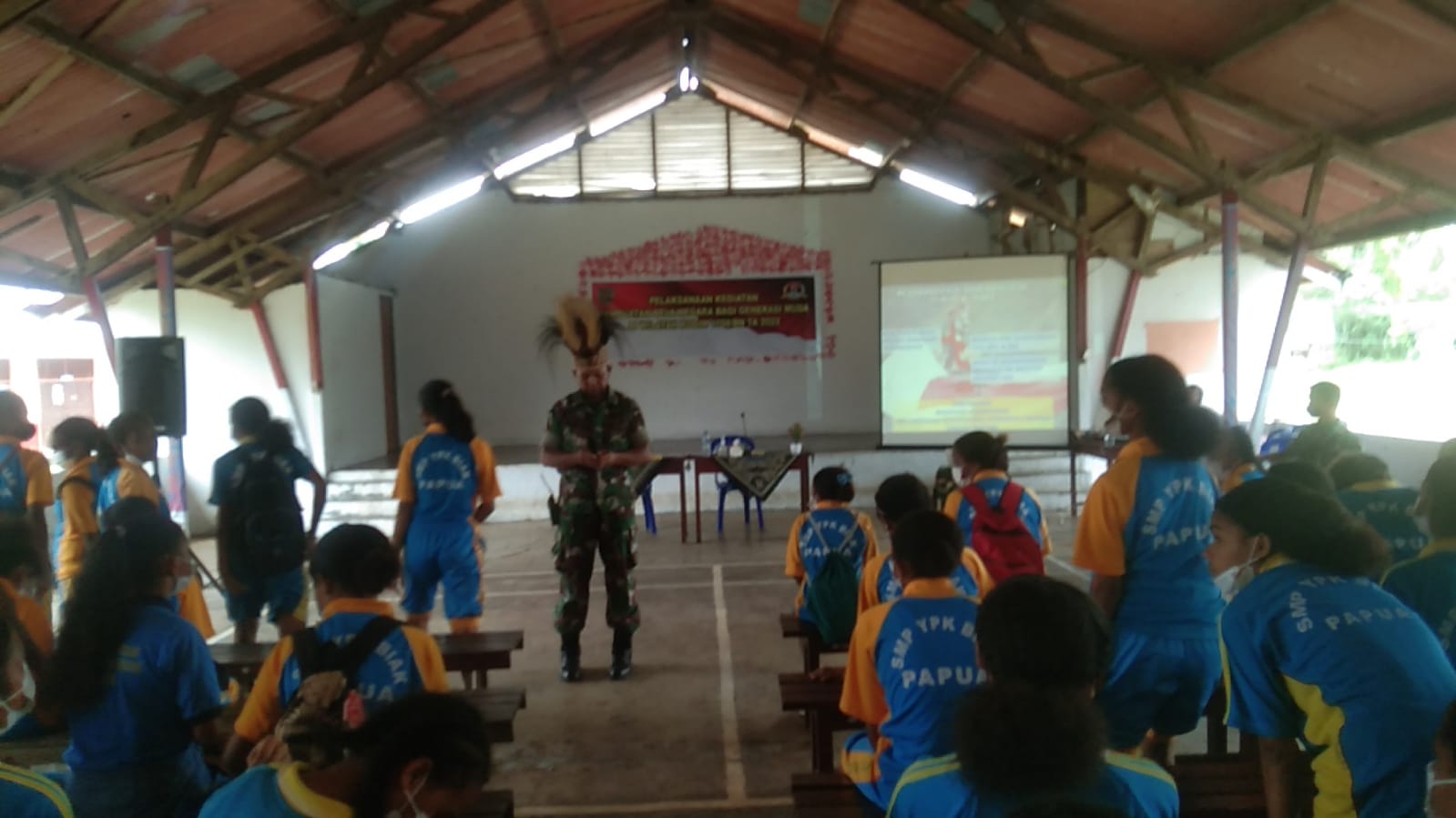 KeizalinNews.com Biak — Pasiter Kodim 1708/Biak Numfor memberi materi Wasbang Kepada Siswa SMP YPK 1 Biak, Pasi Ter Kodim 1708/Biak Numfor Kapten Inf Iriyanto…