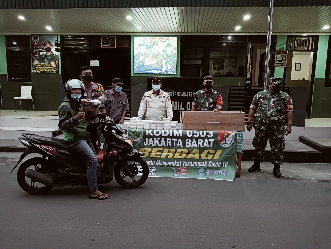 Jakarta KEIZALINNEWS Kodim 0503/JB – Koramil 01/TS – Sebanyak 150 box nasi siap saji di bagikan kepada warga masyarakat yang melintas di Makoramil 01/Tamansari…