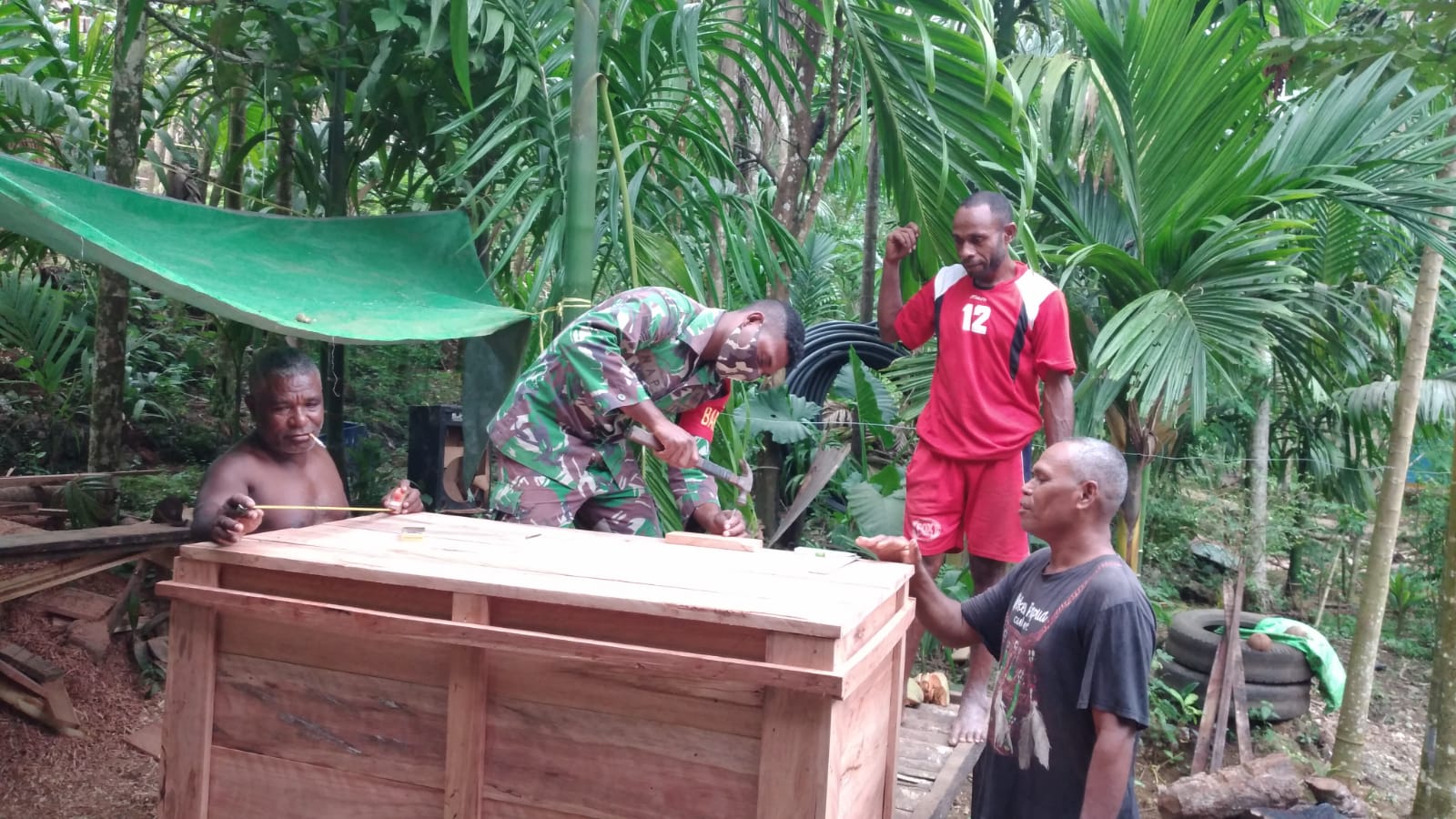 KeizalinNews.com Warsa — Mendukung pekerjaan masyarakat di wilayah binaanya, Babinsa Posramil 1708-02/BU, Warsa Sertu Melkianus Nap turut serta membantu salah satu warganya membuat Peti…