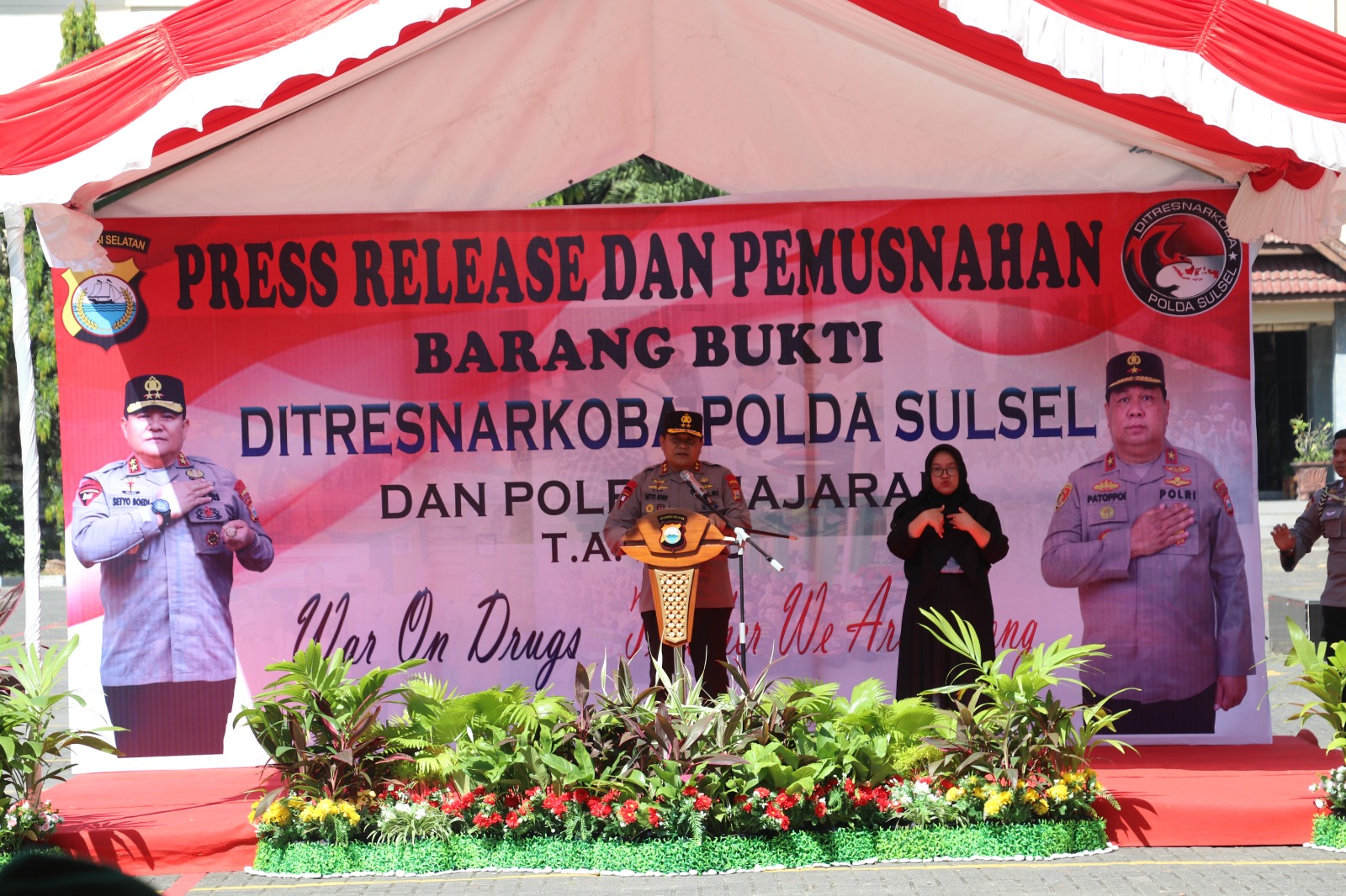 KeizalinNews.Com, Makassar (Sulsel) — Kapolda Sulawesi Selatan (Sulsel) Irjen Pol. Drs. Setyo Boedi Moempoeni Harso.,SH.,M.Hum, menggelar Pemusnahan Barang Bukti Pengungkapan kasus Narkotika oleh Satuan…