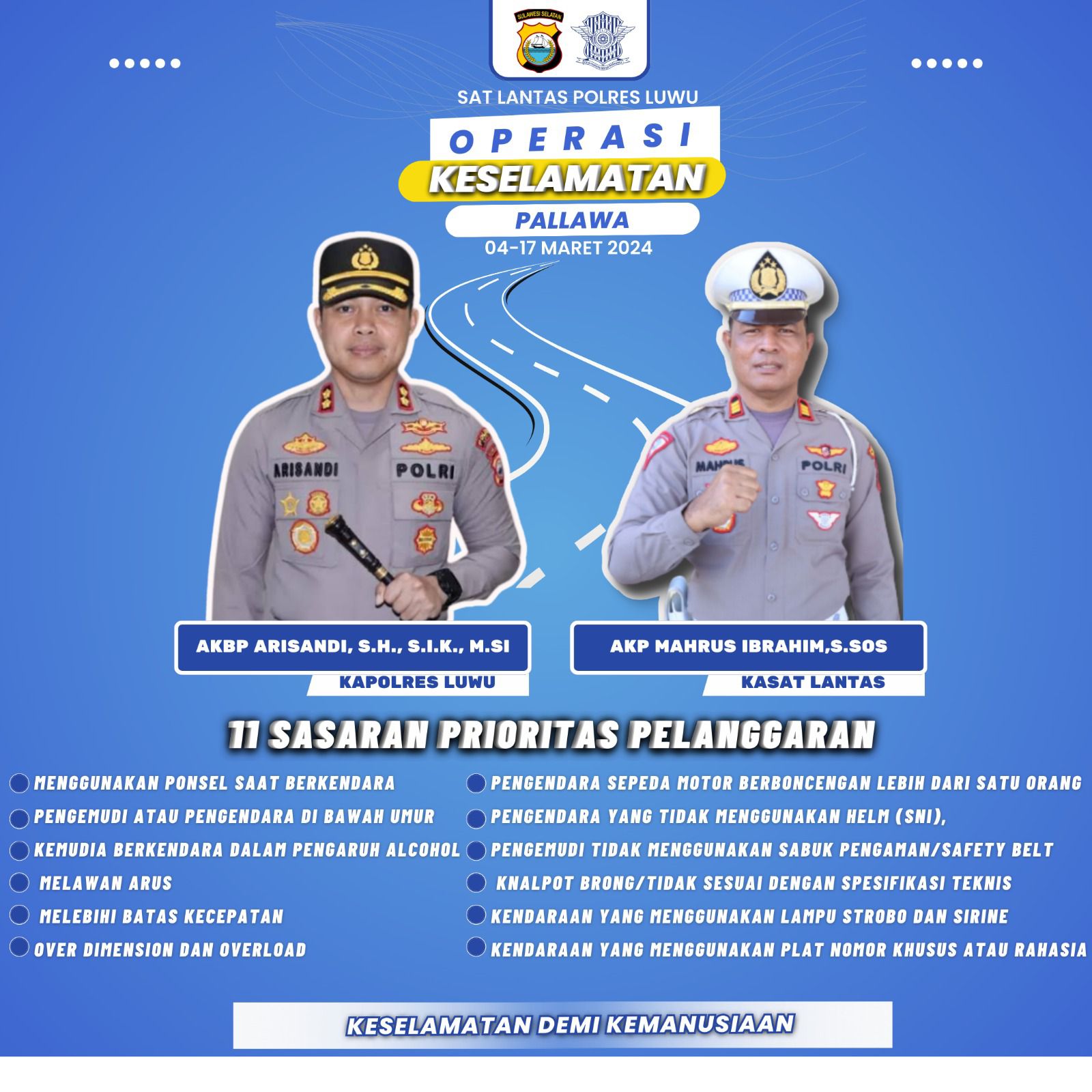KeizalinNews.Com, LUWU (Sulsel) -– Satuan Lalu Lintas (Satlantas) Polres Luwu jajaran Polda Sulsel akan menggelar Operasi Keselamatan Pallawa yang dilaksanakan serentak di seluruh Indonesia…