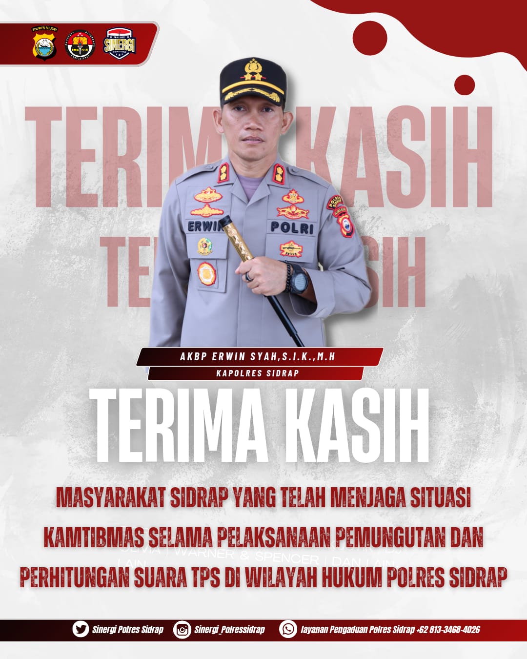 KeizalinNews.Com, SIDRAP (Sulsel) — Pesta Demokrasi telah berakhir, Kapolres Sidrap AKBP Erwin Syah, S.I.K.M.H mengucapkan terima kasih dan apresiasi ke masyarakat atas Pemilu berjalan…